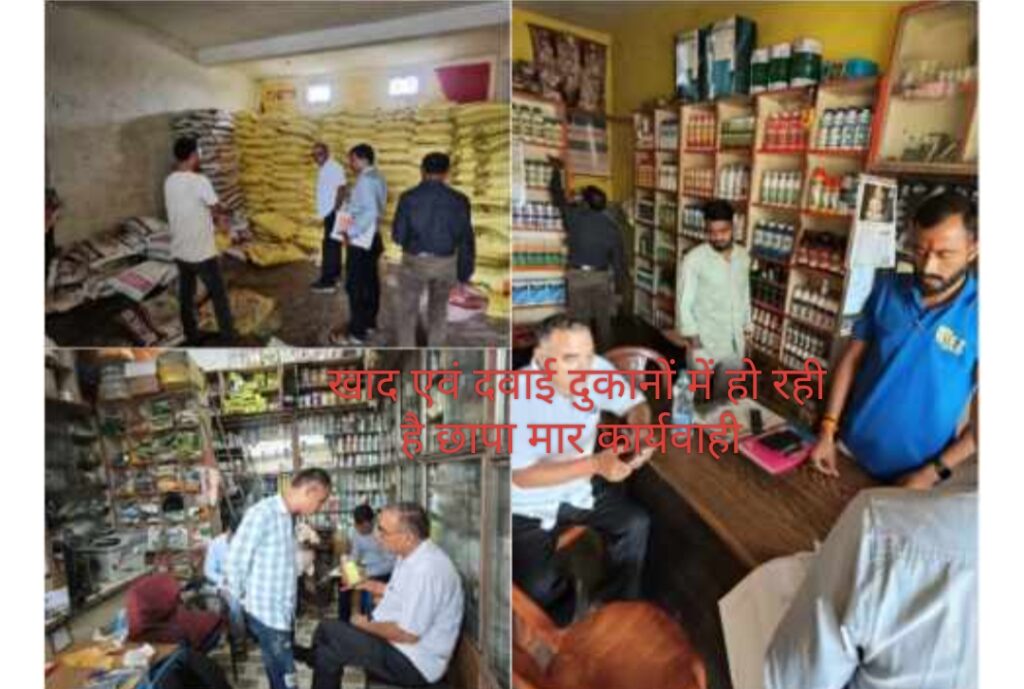 कालाबाजारी रोकने हेतु कलेक्टर के निर्देश पर निजी खाद एवं दवाई दुकानों में छापामार कार्यवाही।