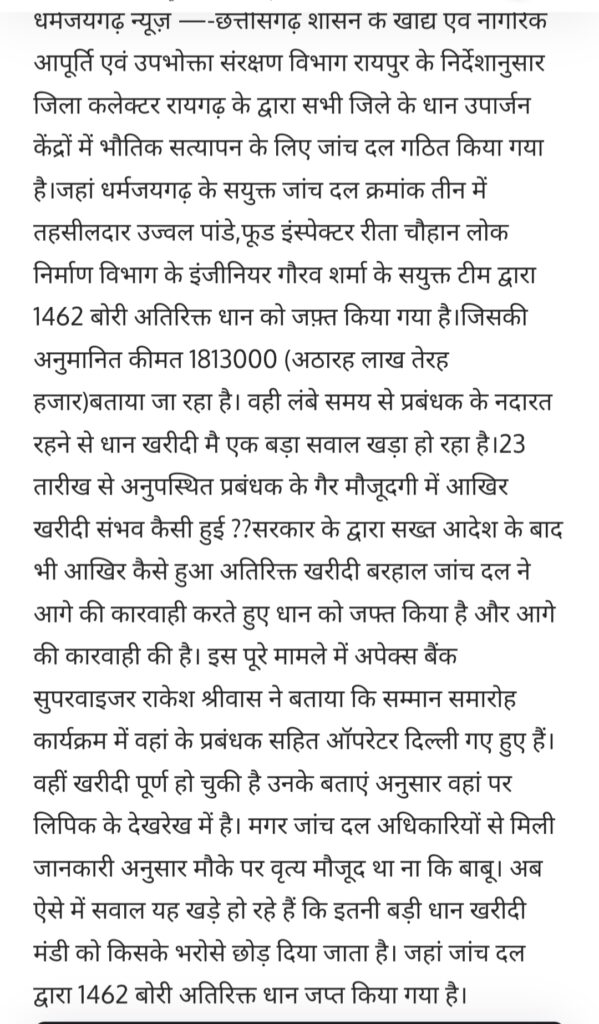 Home/Blog/गेरशा धान मंडी में भौतिक सत्यापन के दौरान एक लाख तेरह हजार का अतिरिक्त धान जप्त । Blog गेरशा धान मंडी में भौतिक सत्यापन के दौरान एक लाख तेरह हजार का अतिरिक्त धान जप्त । परितोष मंडल30 January 20250 69 Less than a minute Facebook Twitter LinkedIn Pinterest WhatsApp Telegram परितोष मंडल30 January 20250 69 Less than a minute Facebook Twitter LinkedIn Pinterest WhatsApp Telegram Share Facebook Twitter LinkedIn Pinterest WhatsApp Telegram Share via Email Print