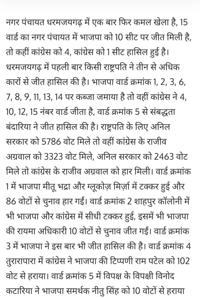 Home/Blog/धरमजयगढ़ नगर पंचायत में खिले कमल। अनिल सरकार ने लगभग 2500हजार वोटो से जीता। वार्ड नंबर 8 में जानू सिदार ने दर्ज की जीत। Blog धरमजयगढ़ नगर पंचायत में खिले कमल। अनिल सरकार ने लगभग 2500हजार वोटो से जीता। वार्ड नंबर 8 में जानू सिदार ने दर्ज की जीत। परितोष मंडल15 February 20250 39 Less than a minute Facebook Twitter LinkedIn Pinterest WhatsApp Telegram परितोष मंडल15 February 20250 39 Less than a minute Facebook Twitter LinkedIn Pinterest WhatsApp Telegram Share Facebook Twitter LinkedIn Pinterest WhatsApp Telegram Share via Email Print