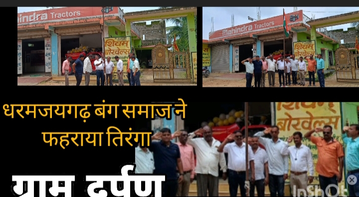 धरमजयगढ़ बंग समाज ने फहराया तिरंगा।
