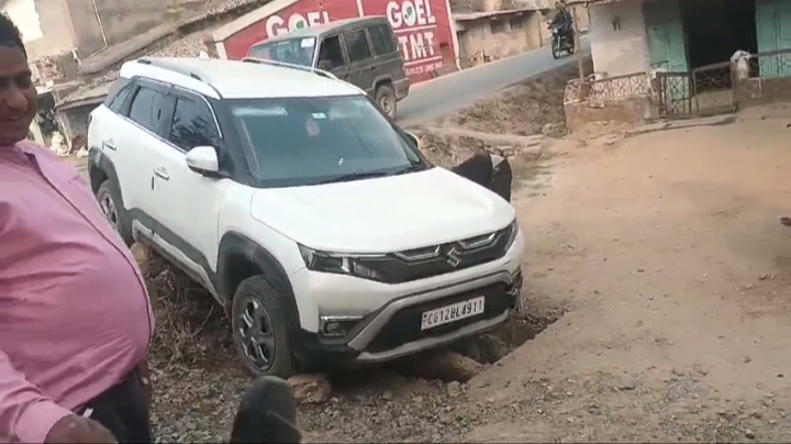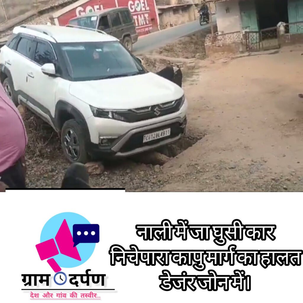 धरमजयगढ़ के नीचे पारा मे एक कार नाली में जा घुसी आज धरमजयगढ़ के एक परिवार अपने कार से मार्केट में खरिदारी कर घर लौट रहे थे इस दौरान रोड की खराब स्थिति के कारण कार नाली में घुस गई जहां देखते ही देखते लोगों की भिड़ लग गई।