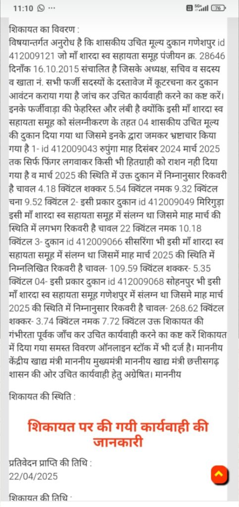 जांच चल रही है अजय गुप्ता का राशन घोटाला स्पष्ट है फिर भी जांच एवं कार्यवाही के में इतना समय लग जाना कहीं ना कहीं विभाग की जानबूझकर अनदेखा करना प्रतित हो रहा है या अजय गुप्ता को बचाने के प्रयास में कुछ न कुछ रास्ता तलाशने की कोशिश प्रतित हो रहा है। अजय गुप्ता के नाम से शिकायत की कॉपी से स्पष्ट नजर आ रहा है कि हेरा फेरी की सूची लंबी है।