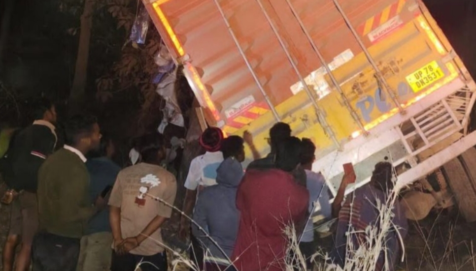 शराबियों की मौज, अवैध शराब से भारी पलटी ट्रक को लूटने में लगे लोग।