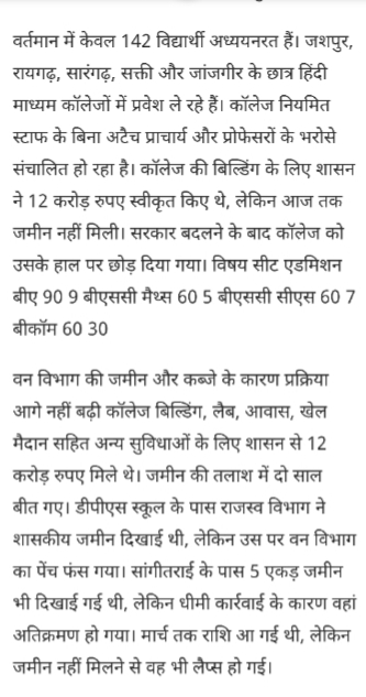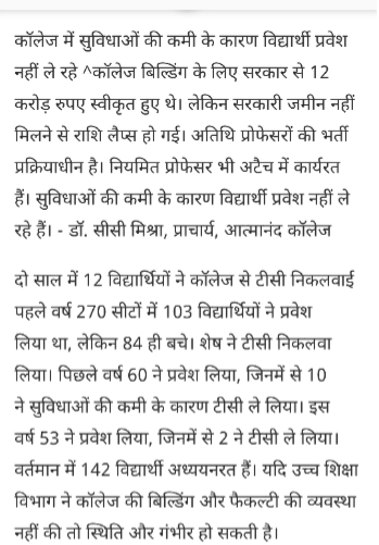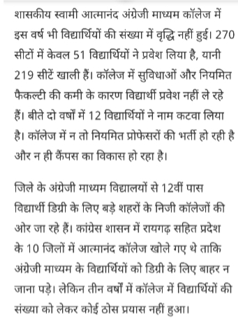 शासकीय आत्मानंद अंग्रेजी माध्यम कालेज में विद्यार्थियों की कमी।