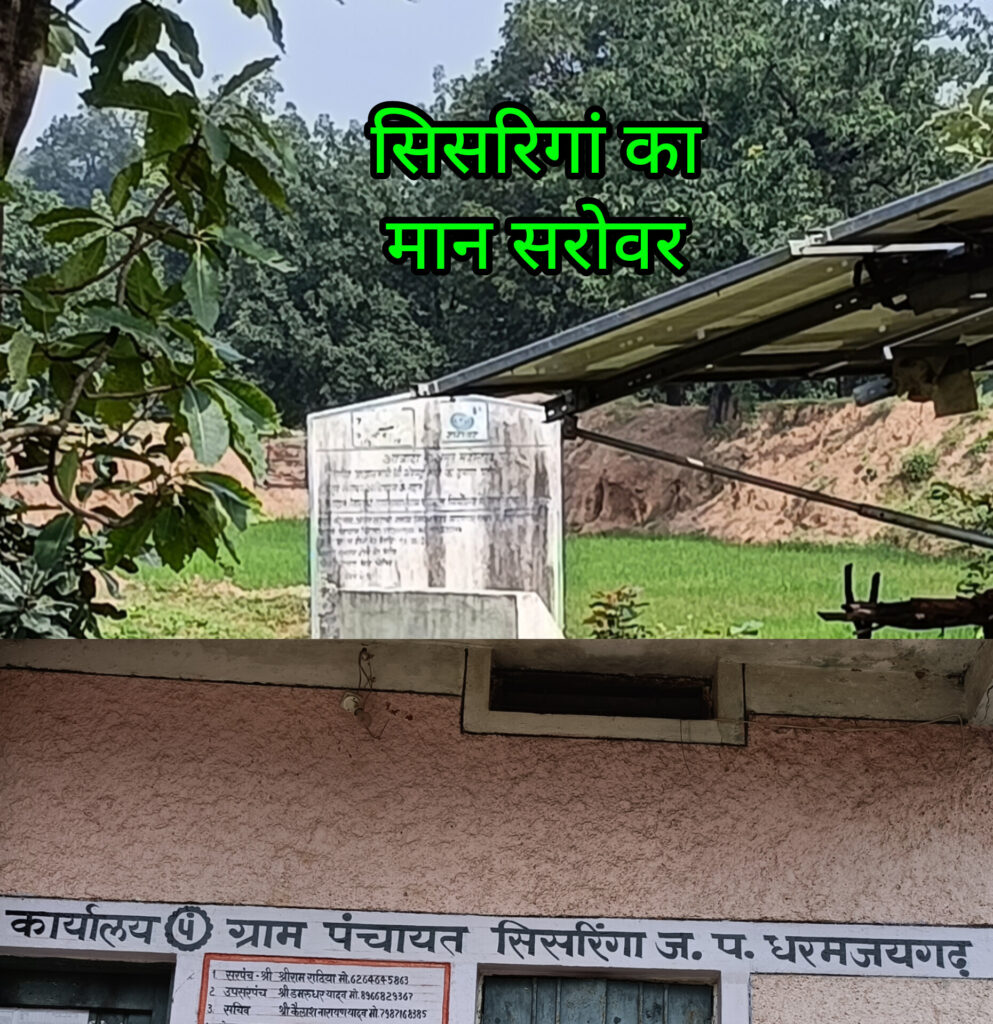 ग्राम दर्पण न्यूज़ / धरमजयगढ़ विकास खंड के ग्राम पंचायत सिसरिगां में एक धान उगाने वाले खेत को थोड़ा बहुत नाम मात्र का सुधार कर के अमृत सरोवर का रुप दिया गया है
